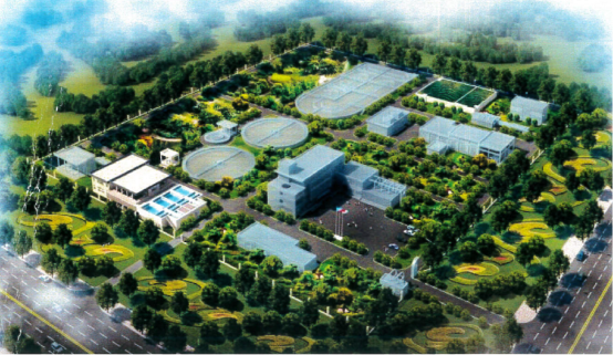 污水處理廠總控制用地面積12公頃,近期建設用地3.943公頃,預留遠景發展用地8.057公頃,處理規模為5萬m3/d。